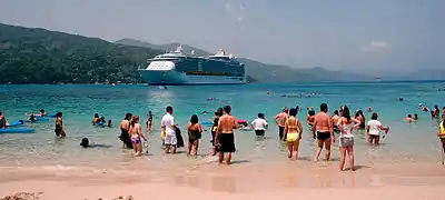 In French, the ï in Haïti has a diacritical mark (used to show that the second vowel is pronounced separately, as in the word naïve), while the H is silent.[39] (In English, this rule for the pronunciation is often disregarded, thus the spelling Haiti is used.) There are different anglicizations for its pronunciation such as HIGH-ti, high-EE-ti and haa-EE-ti, which are still in use, but HAY-ti is the most widespread and best-established.[40] In French, Haiti's nickname means the "Pearl of the Antilles" (La Perle des Antilles) because of both its natural beauty[41] and the amount of wealth it accumulated for the Kingdom of France. During the 18th century the colony was the world's leading producer of sugar and coffee.[42]