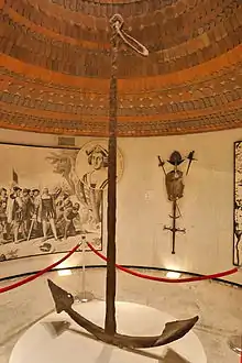 Navigator Christopher Columbus landed in Haiti on 6 December 1492, in an area that he named Môle-Saint-Nicolas,[48] and claimed the island for the Crown of Castile. Nineteen days later, his ship the Santa María ran aground near the present site of Cap-Haïtien. Columbus left 39 men on the island, who founded the settlement of La Navidad on 25 December 1492.[20] Relations with the native peoples, initially good, broke down and the settlers were later killed by the Taíno.[49]