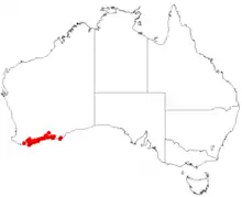 Hakea denticulata occurs on Western Australia's southern coast from Albany to east of Esperance. It reaches the Stirling Range to the north. It is found on a range of soils from sand to gravel and even a heavier clay loam.[3]
