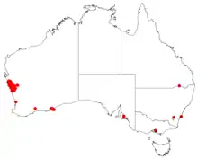 This species grows in heath and shrubland in sand, loam and gravel north of Perth from Kalbarri to near Morawa. Also found in small population on the south coast at Mt Ragged and near Esperance where it grows among quartzite rocks. An ornamental frost-tolerant species requiring a sunny aspect and a well-drained site.[3][2][6]