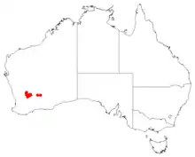 Hakea rigida is an uncommon species growing from Beacon, Bonnie Rock, Westonia the Yilgarn north of Southern Cross. Recorded only from a few specimens, occurring in mallee-shrubland, open sand plains to gravelly soils.[4][5]