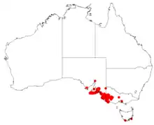 In Victoria it occurs through a range of heathlands and heathy woodlands in the west and south-west, mostly on sandy soils.[3]