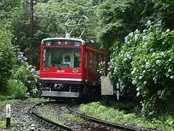 The Hakone Tozan Railway (箱根登山鉄道, Hakone Tozan Tetsudō) is a private railway company in Japan, part of the Odakyu Group. It is best known for its operation of the Hakone Tozan Line, the first mountain railway in Japan, but like most Japanese railway companies, also operates bus service, namely Hakone Tozan Bus. It also operates the connecting Hakone Tozan Cable Car.[1][2]