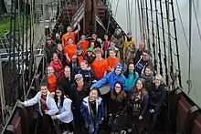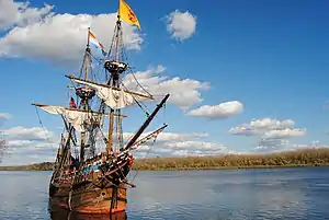 Half Moon is a replica of the famed ship that English mariner, Henry Hudson, sailed up the Hudson River in 1609. The ship was constructed between 1988 and 1989 at the Snow Dock in Albany, New York, its construction commissioned by Dr. Andrew Hendricks.[1] The ship's construction fulfilled Dr. Hendricks' dream to use the historic icon as an educational instrument, bridging the gap between the American way of life and the Dutch heritage in New York state. In March of 2015, the replica ship departed the Hudson River Valley to a new home, Hoorn, The Netherlands.[2] In February 2019, it was announced that the Hoorn government would not extend their contract to serve as the Dutch homeport of the Half Moon. Hoorn's contract expired on April 1, 2020.[3] The Half Moon is currently at port in Volendam, Netherlands. The board of directors of the New Netherland Museum have not announced what the future of the ship may hold.[4]