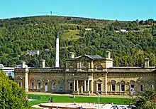 The original station was built at Shaw Syke, approximately 220 yards (200 m) west of the current location[2] and opened on 1 July 1844 by the Manchester and Leeds Railway as the terminus of a branch off their main line from Manchester to Normanton.[3][4] With the opening of the line between Halifax and Bradford on 7 August 1850, a new station was opened on the current site; this had temporary wooden buildings.[4][5] The station at Shaw Syke was then extended and used as a goods depot[6] The permanent buildings at the current site were designed by Thomas Butterworth[7] and opened on 23 June 1855.[8] This Grade II listed building housed the nursery associated with the Eureka! Children's Museum until its closure on 18 December 2020.