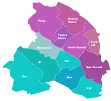 - Only used in Valdres, except for Vang.[24]