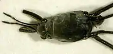 Halobates micans is a species of water strider in the family Gerridae.[1][2][3][4] It is one of five Halobates species that live on the surface of the open ocean, only occurring near the coast when storms blow them ashore. Unlike the others that are restricted to the in the Indian and/or Pacific Oceans, H. micans is circumglobal, occurring offshore in warmer seas around the world. It is the only Halobates species found in the Atlantic Ocean (including the Caribbean) where it ranges from about 40° north to 40° south.[5][6]