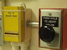 Flooding systems may be manually operated or automatically triggered by a VESDA or other automatic detection system. In the latter case, a warning siren and strobe lamp will first be activated for a few seconds to warn personnel to evacuate the area. The rapid discharge of halon and consequent rapid cooling fills the air with fog, and is accompanied by a loud, disorienting noise.