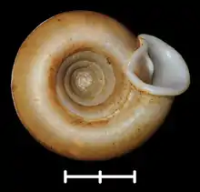 ![]() Apertural view. Scale bar is 10 mm. |