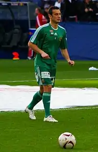 In the third round, the team was seeded with Moldavian side Milsami Orhei.[40] In the first leg at Zimbru Stadium, Salihi was again the matchwinner by scoring twice, helping the team to prevail 2–0.[41] In the returning leg at Elbasan Arena, Salihi was again in the scoresheet as Skënderbeu recorded another 2–0 win, advancing in play-off round with the aggregate 4–0.[42] By doing this, Skenderbeu become first Albanian club to reach the Champions League play-offs.[42]