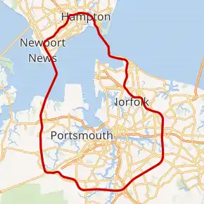 ![]() Hampton Roads Beltway highlighted in red | |