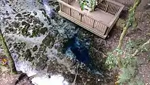 The spring flows as a stream for approximately one kilometre in the Hamurana Springs Recreation Reserve through a patch of redwoods forest before joining Lake Rotorua.[3] In summer the stream is home to rainbow trout who prefer the cooler temperature of the spring water.