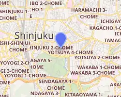 ![]() Sun Mall Crest in Shinjuku-ku, Tokyo, where the Hanazono Room is located at the top floor. | |