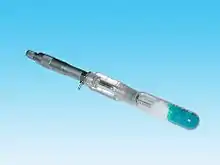 The hanging mercury drop electrode (HMDE or HDME) is a working electrode variation on the dropping mercury electrode (DME). Experiments run with dropping mercury electrodes are referred to as forms of polarography. If the experiments are performed at an electrode with a constant surface (like the HMDE) it is referred as voltammetry.
