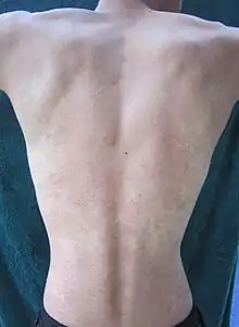 Acetaldehyde, the first by-product of ethanol, is between 10 and 30 times more toxic than alcohol itself[11] and can remain at an elevated plateau for many hours after initial ethanol consumption.[12] In addition, certain genetic factors can amplify the negative effects of acetaldehyde. For example, some people (predominantly East Asians) have a mutation in their alcohol dehydrogenase gene that makes this enzyme unusually fast at converting ethanol to acetaldehyde. In addition, about half of all East Asians convert acetaldehyde to acetic acid more slowly (via acetaldehyde dehydrogenase), causing a higher buildup of acetaldehyde than normally seen in other groups.[13] The high concentration of acetaldehyde causes the alcohol flush reaction, colloquially known as the "Asian Flush". Since the alcohol flush reaction is highly uncomfortable and the possibility of hangovers is immediate and severe, people with this gene variant are less likely to become alcoholics.[14][15]