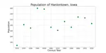 Hanlontown was founded on October 9, 1899, when a portion of the Chicago and North Western Railroad was built in the southwestern part of Worth County.[1] It was named for the property owner, James Hanlon,[4] and was incorporated on January 18, 1902.[1]