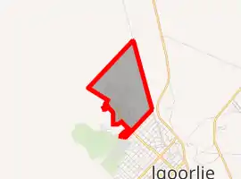 Hannans contains Kalgoorlie-Boulder's northernmost dwellings, which are located around 4 kilometres (2.5 mi) from the Kalgoorlie town centre. The suburb is roughly diamond-shaped, with large areas of uncleared bushland in the north and east. Hannans is bounded by the Leonora branch line of Eastern Goldfields Railway to the north-east; by Killarney Street to the south-east; by a series of minor roads to the south-west; and to the north-west by a line running parallel to a track leading back to the railway.[3]