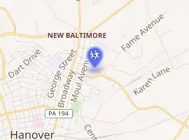 Hanover Senior High School is located at 401 Moul Ave, Hanover, Pennsylvania. It is part of the Hanover Public School District. According to the National Center for Education Statistics, in 2018–2019, the school reported an enrollment of 481 pupils in grades 9th through 12th.[2] The school employed 35.56 full-time-equivalent teachers, yielding a student–teacher ratio of 13.53:1.[4]The school's colors are orange and black, and the mascot is the Nighthawk.