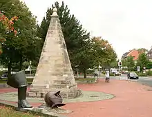 The main thoroughfare through Seelze passes by this monument in the town center.
