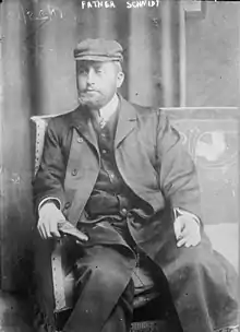 Although many who knew him had serious doubts about his moral and mental fitness to serve as a Catholic priest, Schmidt claimed that he was ordained by Bishop Kirstein of Mainz on December 23, 1904.[5] In a later conversation with Manhattan alienists, he recalled, "The Bishop ordained me alone. I do not like to speak of it. The real Ordination took place the night before. St. Elizabeth, she ordained me herself. I was praying at my bedside when she appeared to me and said, 'I ordain you to the priesthood.' There was light during her appearance. I told no one. I thought it best to keep it to myself. They would make fun of me. They always made fun of me for these things. They always expect others to do as they do. God speaks to different people in different ways."[6]