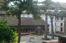 Hanuman Dhoka (Nepali: हनुमान ढोका) is a complex of structures with the Royal Palace of the Malla kings and also of the Shah dynasty in the Durbar Square of central Kathmandu, Nepal. It is spread over five acres. The Hanuman Dhoka Palace (Hanuman Dhoka Darbar in Nepali) gets its name from the stone image of Hanuman, the Hindu deity, that sits near the main entryway. 'Dhoka' means door or gate in Nepali.[1] The buildings were severely damaged in the 2015 earthquake.[2]