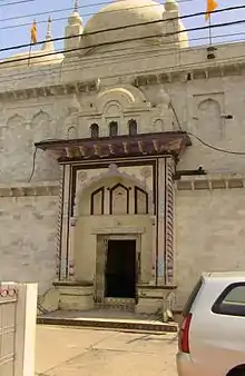 The temple appears like a fortress with numerous shikharas. Originally built in 1686 CE,[7] it was renovated in the 19th century,[8] the temple has 22 shrines (vedis), making it the largest independent Jain temple in India. The images range from Kalachuri period to modern times. The main room with glasswork was built in 1886 by Bholanath Singhai, who also helped initiate the first two Hitkarini Sabha schools. This room contains the only image of the Jain Goddess, Padmavati, that is still worshipped in central India. It is the main Jain temple in Jabalpur, the annual Jain procession on the birthday of Lord Mahavira starts from here[9] and terminates at Bada Fuhara. Daily shastra-sabha and evening classes are held.
