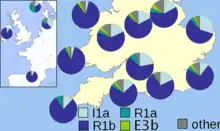 - Capelli C, Redhead N, Abernethy JK, Gratrix F, Wilson JF, Moen T, et al. (May 2003). "A Y chromosome census of the British Isles". Current Biology. 13 (11): 979–84. doi:10.1016/S0960-9822(03)00373-7. PMID 12781138. S2CID 526263.