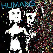 Happy Hour, new wave band Humans' debut full-length album, was released in 1981 on I.R.S. Records,[1] and recorded at the famed Automatt studio in San Francisco. The songs "Don't Be Afraid Of The Dark"/"Get You Tonight" and "Lightning" were released as a radio station promo single.[2] Lead singer Sterling Storm directed a longform music video based on this album. The videotape, entitled Happy Hour with the Humans, was distributed by Mike Nesmith's pioneering company, Pacific Arts Video.[3]