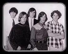 The band began in 1963 in Fremont, California in the East Bay area, not far from San Francisco.[1][2][3] They were founded by Bob Hoyle III and Ron Rotarius, who had begun playing guitar together several years earlier when they were in the eighth grade.[1][4] The two continued to collaborate in high school, where, as sophomores, they recruited friends to put together a band called the Norsemen.[1][3] In 1965, Hoyle was called, as a Naval reservist, to active duty in Vietnam.[1] By the time he returned in 1966, the band, now called Harbinger Complex, had already been performing under the leadership of Rotarius.[1][2] Upon re-entering, Hoyle became the band's the band’s lead guitarist, while Rotarius went to rhythm guitar. During Hoyle's stint in Vietnam, the band had brought in Jim Hockstaff, known for his "Dionysian exploits," to become the group's lead singer and front man.[1][2] The other members were Gary Clark (bass), Jim Redding (drums), and Chuck Tedford (organ).[1] Tedford left the band shortly thereafter, and would not appear on any of the group's recordings.[1][3]