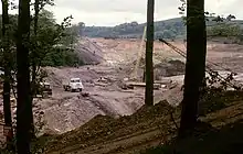 During the 1960s, work was underway on the wider electrification of the West Coast Main Line; however, the Harecastle railway tunnels posed a particular challenge. It was decided to open out the North tunnel, which was achieved via a series of flying buttresses that effectively made it a tunnel no longer.[4] In contrast, both the South and Middle tunnels were deemed to be unsuitable for electrification due to their limited size. Instead, it was decided to divert the line away from the tunnels onto a new alignment running to the west, along with the newly built Kidsgrove Tunnel that was bored to carry this diversion.[5][2][7] The diversion starts about 300 metres south of Kidsgrove railway station, and rejoined the original line just to the west of Tunstall (roughly where the A527 crosses the line). The last trains to use the original alignment were run during 1965.[8][4]