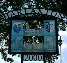 The village is mentioned in the 1086 Domesday Book as "Herlavestune". The name derives from the Old English Herelaf+tun, meaning "estate or farm of Herelaf".[3] In 1740 a burial urn was uncovered in the village containing Roman coins. The history of Harlaxton village is tied to that of Harlaxton Manor.[4]