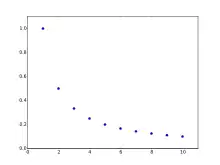 - 1, 1/2, 1/3, 1/4, 1/5, 1/6, sometimes referred to as the harmonic sequence