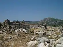 Lycia features heavily in Greek mythology. The Titan goddess Leto fled to Lycia after giving birth, or in order to give birth, to Apollo and Artemis.[12] The Lycians play a part in the Iliad, under their leader Sarpedon, as allies of Troy.[12][13] Bellerophon killed the fire-breathing monster Chimera which was ravaging Lycia.[14]