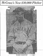 Howard "Harry" Edward Baldwin (June 3, 1900 – January 23, 1958) was a Major League baseball player. He was a right-handed pitcher for two seasons with the New York Giants, beginning in 1924.[1] Prior to playing for the Giants, Baldwin played for three seasons (1921–1923) with the minor league Newark Bears.[2]
