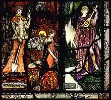 Clarke produced more than 130 windows, he and his brother Walter having taken over his father's studio after his death in 1921.[1] His glass is distinguished by the finesse of its drawing and his use of rich colours, and an innovative integration of the window leading as part of the overall design, originally inspired by an early visit to see the stained glass of the Cathedral of Chartres. He was especially fond of deep blues. Clarke's use of heavy lines in his black-and-white book illustrations echoes his glass techniques.[4]