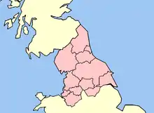 At the time of the Norman Conquest the North consisted of what became Yorkshire, Durham, and Northumberland in the east and Lancashire with the southern parts of Cumberland and Westmorland in the west.[1] The population of the north pre-conquest can be described as "Anglo-Scandinavian" carrying a cultural continuity from a mixing of Viking and Anglo-Saxon traditions. The dialect of English spoken in Yorkshire may well have been unintelligible to people from the south of England, and the aristocracy was primarily Danish in origin.[2]