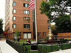 Grove Pointe, a residential complex at 100 and 102 Christopher Columbus Drive, the "30-story tiered brick-and-stone structure with abundant glass" was designed by DeWitt Tishman Architects[30] and built by Kushner Real Estate Group.[31]