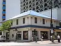 Among his most striking designs are two churches. The First Church of Christ Scientist (1923), where he was a member, employs local materials, adapts some Hawaiian building techniques, and lies athwart cooling tradewinds in a shady tropical landscape.[11] (He employed a similar design in 1922 for the main body of the Albert Spencer Wilcox Building in Lihue, completed in 1924.[12]) The First Chinese Church of Christ (1929) artfully blends bell tower with pagoda, stained glass with colorful glazed tiles, and crosses with traditional Chinese geometric patterns.[13] Similar Chinese motifs can also be seen in the work of other architects that Wood influenced, such as in J. Alvin Shadinger's interior design for the R.N. Linn House (1928).