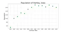 Hartley got its start around 1880, following construction of the Chicago, Milwaukee & St. Paul Railway through that territory.[3] Hartley was named for a railroad official John Hartley.[4]