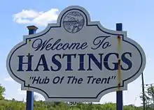 Hastings had a population of 1,208 at the 2001 Census.[1] It is known as "The Hub of the Trent" as Hastings is directly on the Trent River and serves as a major centre for tourists, boaters, and fishermen. One of Hastings' notable symbols is a tall, blue water tower which is perched prominently on high ground in the northern portion of the community.