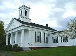 The historic district is centered at the junction of Hill Street and Russell Avenue, and extends north and south along Hill Street. The oldest house in the district, 1061 Hill Street, is estimated to date to 1740, and was an early conservation project of Delphina Clark, the first woman admitted to the Yale School of Architecture. That property also includes the tobacco barn that housed the theater, retaining the stage and proscenium arch in its interior. The district's dominant feature is the 1842 Baptist Church, a fine example Greek Revival architecture. Adjacent to it is the much-altered house of the Hastingses, believed to have been built in the 18th century either by Rev. Joseph Hastings or his son.[2]