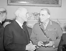 Not long after Eisenhower arrived, on 16 August 1942, Ismay was promoted to the rank of Lieutenant-General.[91] Around the same time, his good relations with the Americans were recognised by others in the government. Thus, in November 1942, when Eleanor Roosevelt visited Britain, Lady Ismay was chosen to host her for one night of her stay.[100]