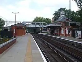 It has two platforms. The northbound (down) platform is on the side of the ticket office and cafe. The southbound (up) platform is reached via a footbridge. This platform was originally an island platform with the other face on the adjacent down fast main line. There was another island platform serving the up fast and down semi-fast lines and a further platform for the up semi-fasts. These other platforms were closed in 1963.[10] A general rebuilding of the access to the two remaining platforms in use was built in the 1980s and a fence built along to shield waiting passengers from the fast trains. Ticket barriers were installed in early 2010.