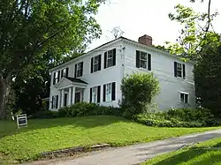 The former Hathaway's Tavern house stands near the northern city limit of St. Albans, on the east side of North Main Street south of Lakeview Terrace. The building is prominently situated on top of a low knoll near the road, a contrast to both surrounding commercial development to the north and west, and to residential development to the south that is generally set further back from the street on level lots. It is a two-story wood-frame structure with a hip roof and clapboarded exterior. The roof cornice is decorated with modillions, and the centered front entrance is flanked by sidelight windows and sheltered by a gabled Colonial Revival portico. The interior of the house is a modified Georgian center hall plan, with large central halls that acted as entertainment spaces when the building was used as a tavern, and were altered to accommodate domestic uses upon conversion to a residence.[2]