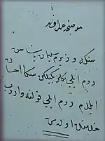 There also exist hatt-ı hümayuns expressing the sultan's opinions or even his feelings on certain matters. For example, after the successful defense of Mosul against the forces of Nadir Shah, in 1743, Sultan Mahmud I sent a hatt-ı hümayun to the governor Haj Husayn Pasha, which praised in verse the heroic exploits of the governor and the warriors of Mosul.[8]