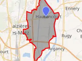 Hauconcourt (French pronunciation: [okɔ̃kuʁ]; German: Halkenhofen) is a commune in the Moselle department in Grand Est in north-eastern France.
