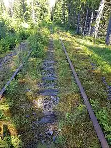 After the war ended in 1945, the line was taken over by the Norwegian Armed Forces.[2] The large number of conscripts made the air force establish passenger traffic on the line in 1947, using Class 87 diesel multiple units. The service was quickly terminated, probably the same year.[6] There were also some attempts to fly civilian air passengers, but these were also soon abandoned, largely because of the poor condition of the track.[3] After this, the line was used only for freight transport, mostly military supplies, fuel and air cargo. It was also used during military practices.[6] A spur line was built to Rustad Sawmill in 1974, introducing civilian traffic.[7]