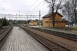 The Hauerseter–Gardermoen Line was built by the German Luftwaffe who had taken over the military facilities at Gardermoen Air Station. During World War II the line was exclusively used for military transport. At first it was used to freight aviation fuel and general cargo, and later it also served military personnel.[4] The railway also allowed the Luftwaffe to have their ammunition depot for Gardermoen located at Hauerseter.[5] Transshipment and other operations resulted in twenty-five people working at Hauerseter Station during the war, compared to seven in 1957.[3]