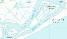 Havergate Island, together with the National Trust managed Orford Ness site is a designated national nature reserve.[7] The island is also included in the Alde-Ore Estuary Site of Special Scientific Interest (SSSI);[8] the Alde, Ore & Butley Estuaries Special Area of Conservation (SAC);[9] the Alde-Ore Estuary Special Protection Area (SPA);[10] the Alde-Ore Estuary Ramsar Site site;[11] the Suffolk Coast and Heaths Area of Outstanding Natural Beauty (AONB);[12] and the Suffolk Heritage Coast area.[13]