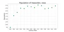 The population of Hawarden, Iowa from US census data